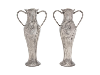 A Pair of American Silverplate Art Nouveau Double-Handled Vases