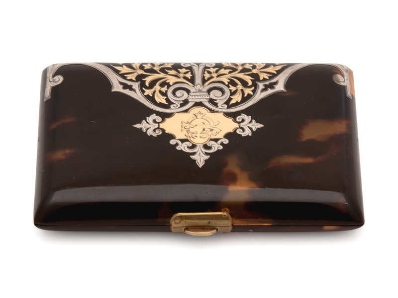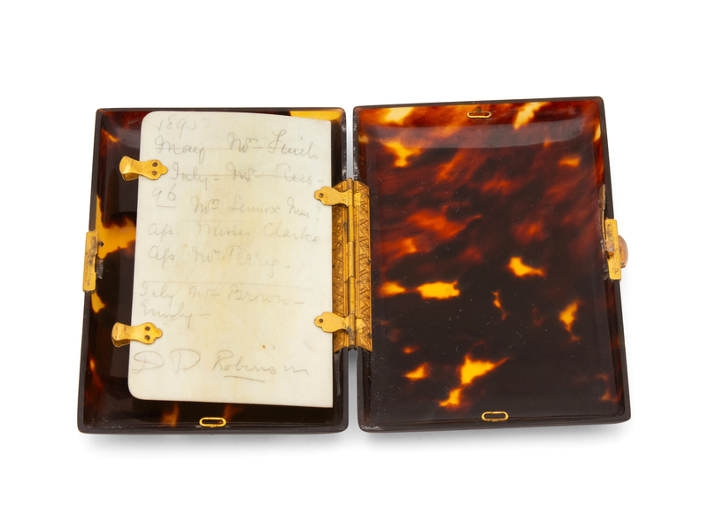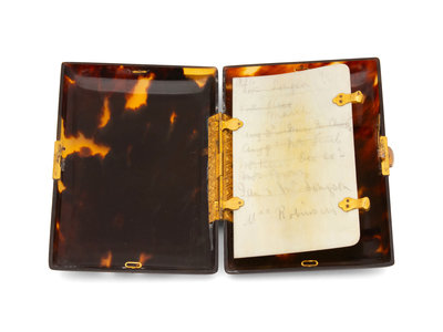 A 9K Yellow Gold and Silver Inlaid Tortoiseshell Card Case and Aide Memoire