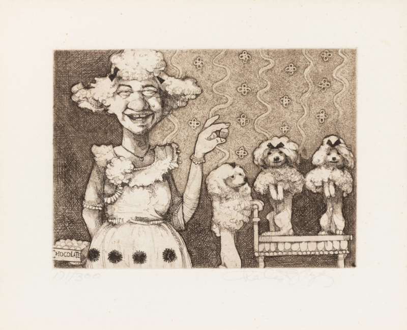 Untitled, depicting a woman with three poodles