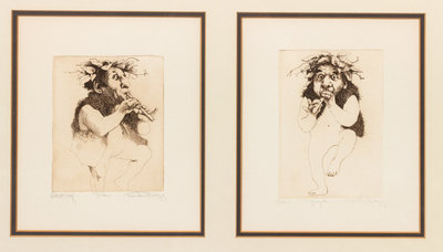 Pan and Nymph framed together with