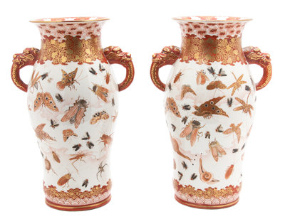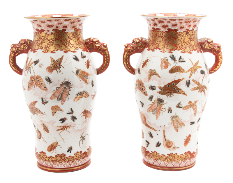 A Pair of Japanese Kutani Porcelain Vases