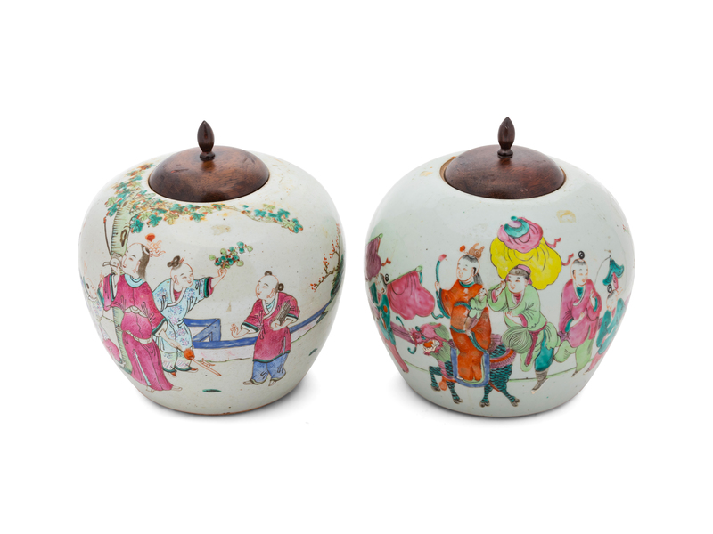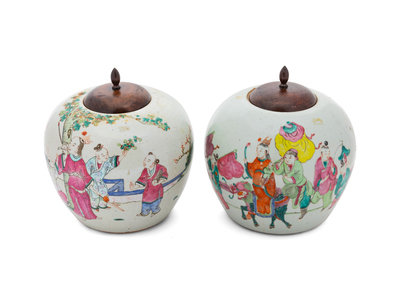 A Pair of Famille Rose Painted Porcelain Ginger Jars