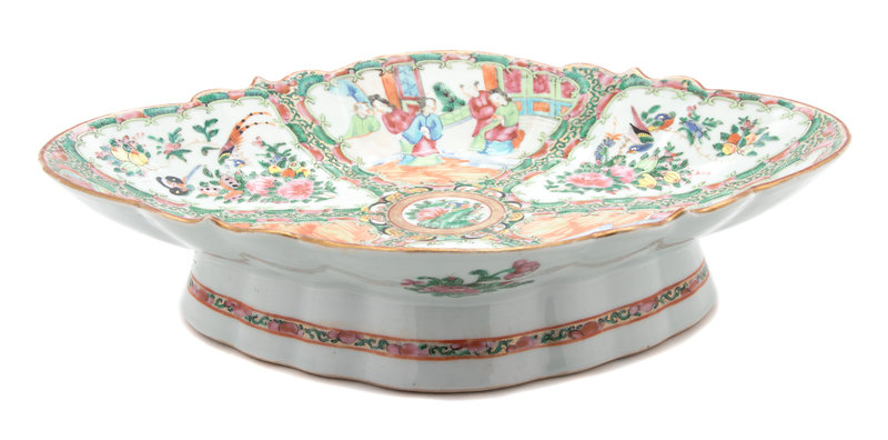A Canton Rose Medallion Porcelain Shallow Footed Bowl