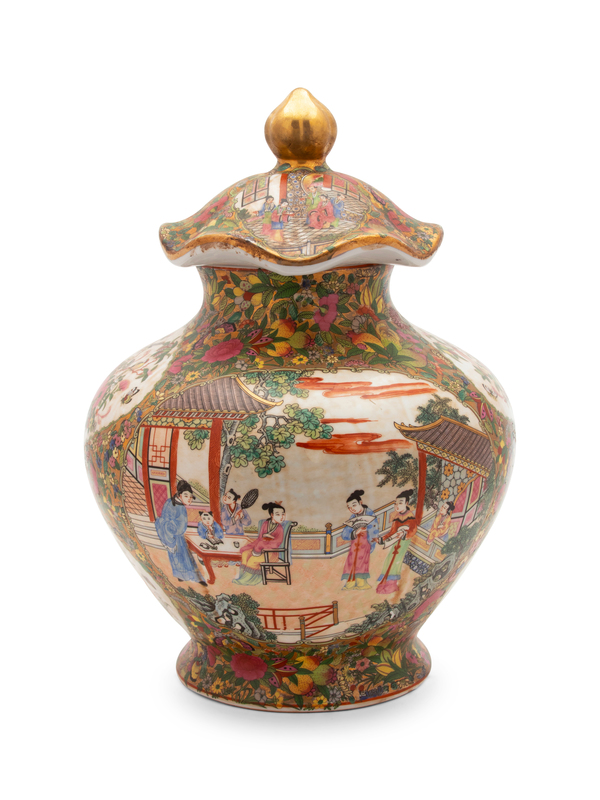 A Rose Canton Porcelain Lidded Vase