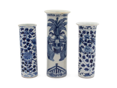 Three Chinese Blue and White Porcelain Cylindrical Vases