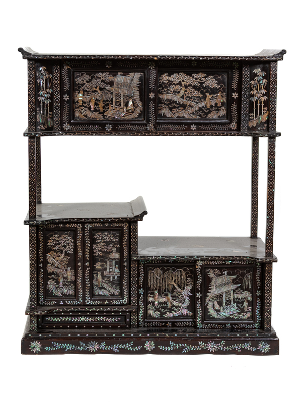 An Asian Black Laquer and Mother-of-Pearl Inlaid Diminutive Etagere