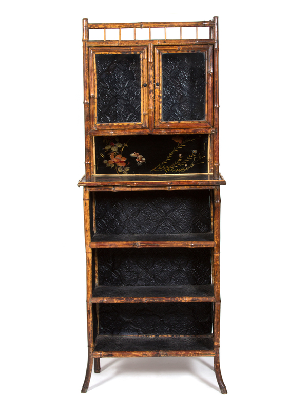 A Victorian Style Burnt Bamboo and Lacquer Display Cabinet