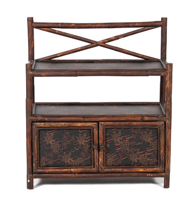 A Victorian Style Bamboo and Chinoiserie Lacquer Etagere Shelf