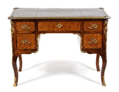 A Louis XV Style Gilt Metal Mounted Parquetry Desk