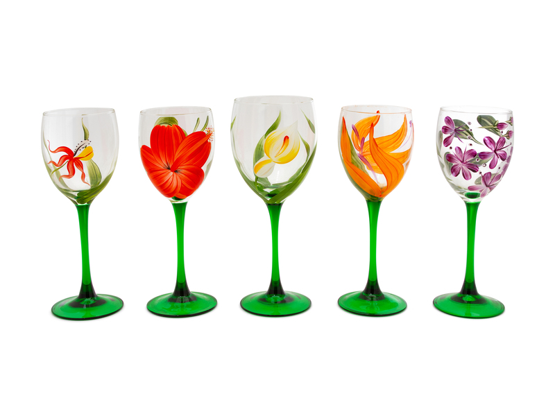 Seventeen Lynn Chase Hand Painted Glass Stemmed Wines