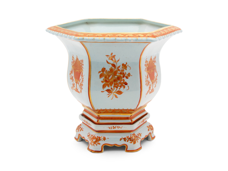 A Mottahedeh Chinese Export Style Ceramic Jardiniere on Stand