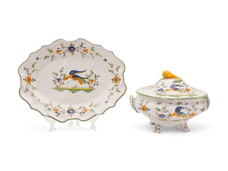 A Quimper Design Ceramic Covered Tureen with Undertray