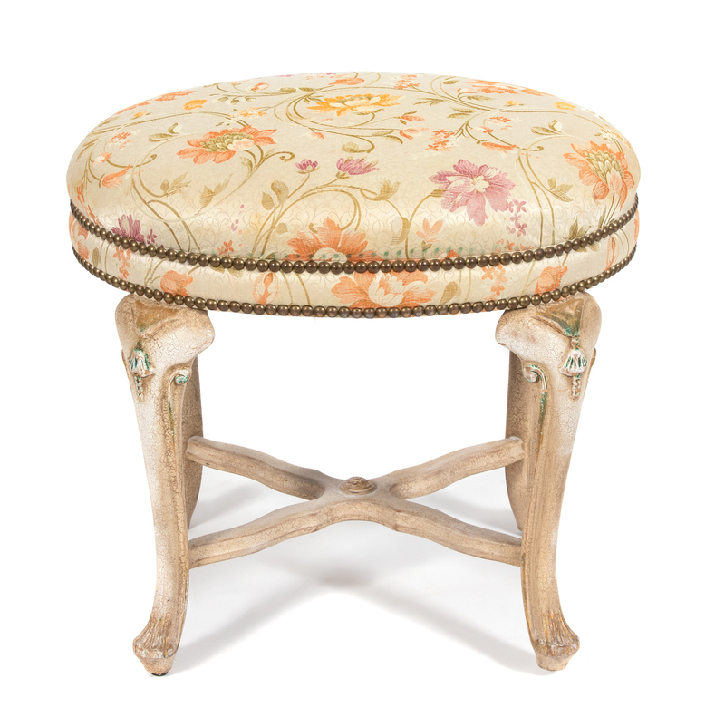 A Louis XV Style Carved and Painted Oval Stool