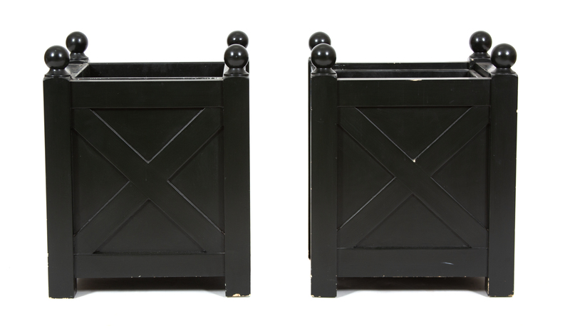 A Pair of Regency Style Black Composition Planters