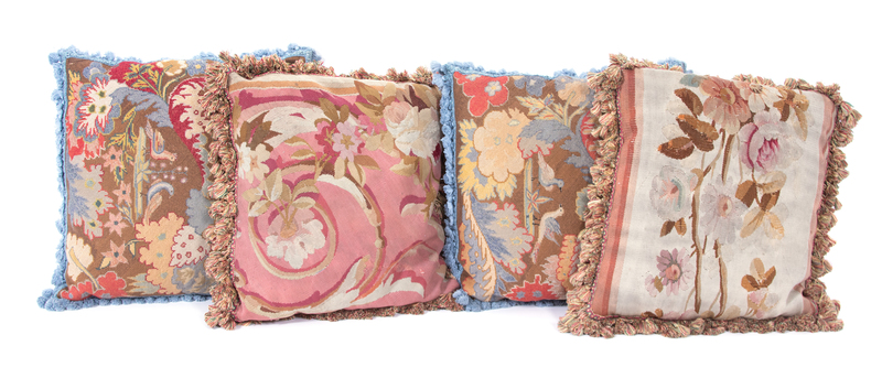 comprising a pair of needlework and a pair of Aubusson floral design.