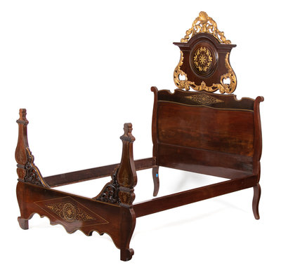 A Napoleon III Gilt Bronze Mounted Mahogany and Parcel Gilt Bed
