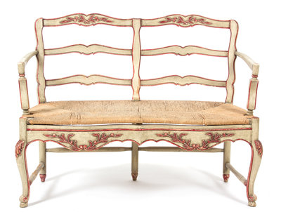 A French Provincial Style Carved and Painted Two-Chair Back Settee