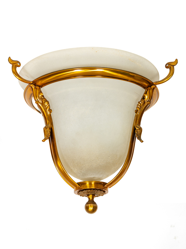 A Pair of Bronze and Opaque White Glass Pendant Lanterns