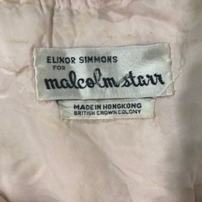 Label: Elinor Simmons for Malcolm Starr / Made in Hong Kong / British Crown Colony