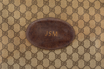 Overall fair condition/consistent with use and age. Canvas shows darkening most notably on front, some wear on trim and handle. Interior: unfinished trim on sides, moderate soiling and dust on bottom of interior, Gucci logo is partially rubbed off.