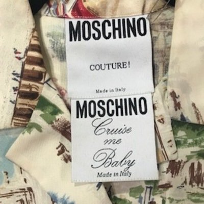 Label: Moschino / Couture! / Made in Italy; Moschino / Cruise Me Baby / Made in Italy
