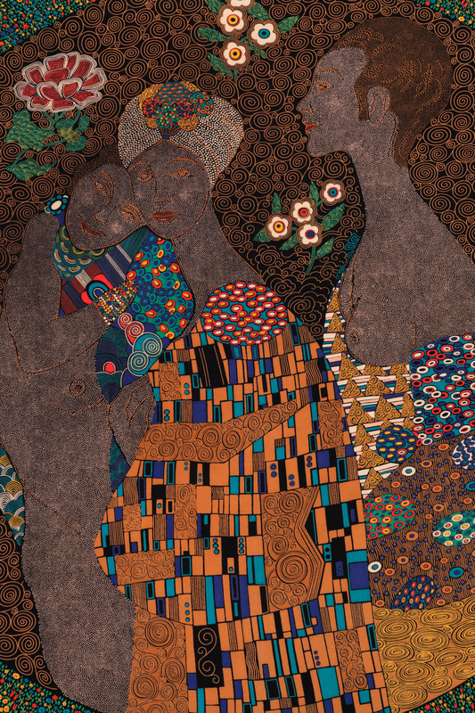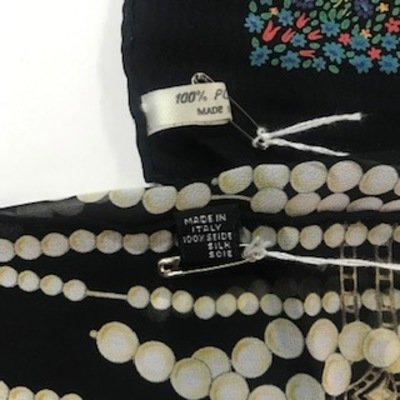 One black with Pearl motif, one black with floral and female motif.