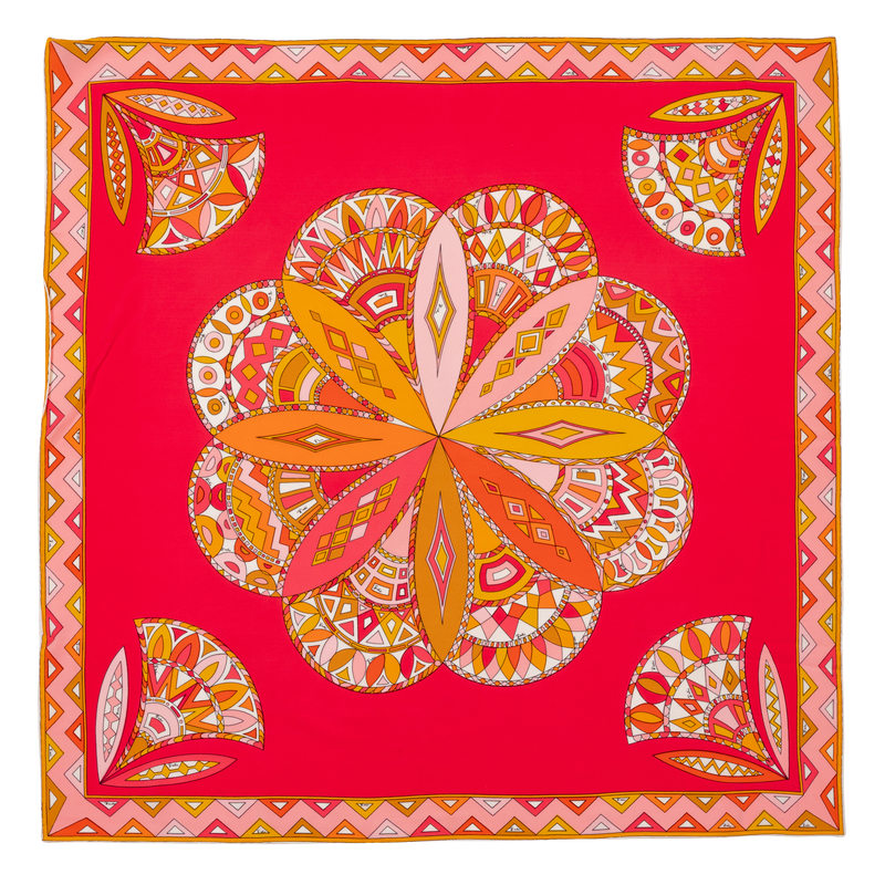 Silk scarf printed with iconic Pucci print in bold outlined colorways.