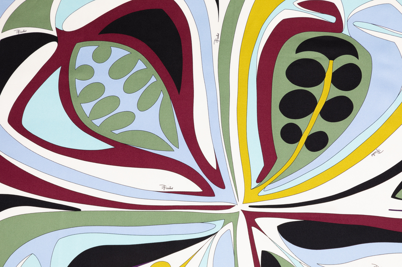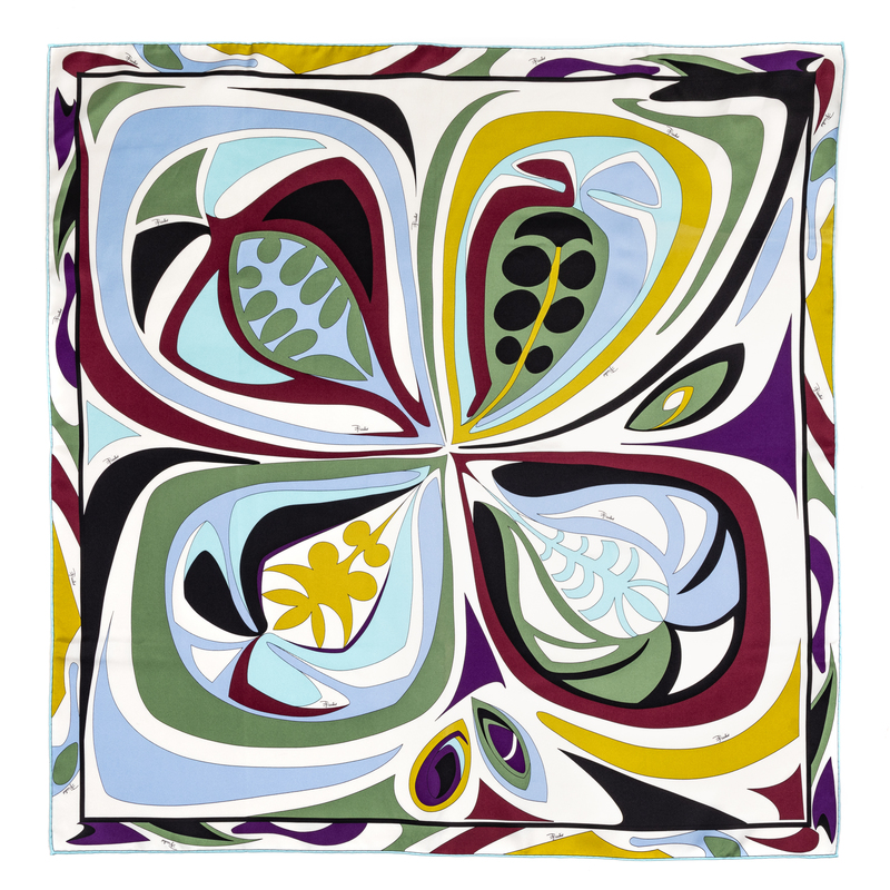 Silk scarf printed with iconic Pucci print in bold outlined colorways.