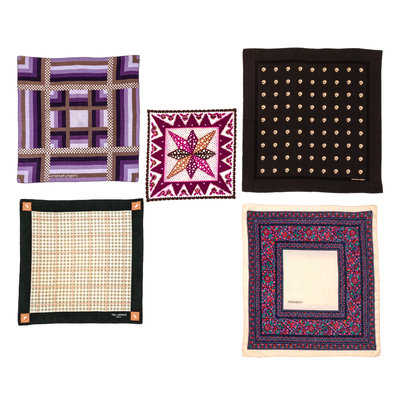 Collection of Five Cotton Pocket Scarves, 1960-80s