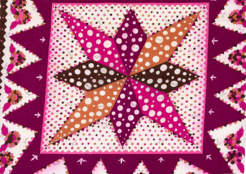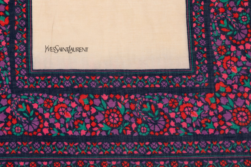 Assortment of silk and cotton scarves with a variety of prints and makers.