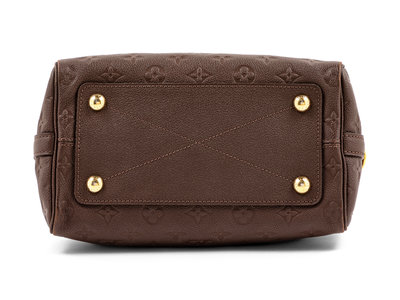 In signature Monogram Empreinte chocolate brown "Terre" embossed leather, with goldtone hardware, striped interior lining with two slip pockets and one zip pocket, top zip closure with dual top handles. Together with key fob, lock, and original care booklet.