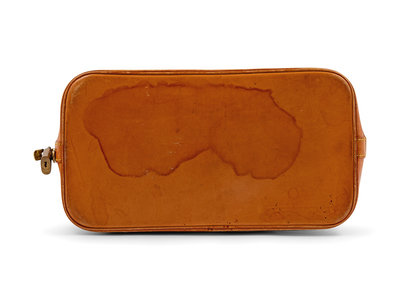 Overall structure in very good condition. Leather has darkened throughout, wear and water marks on the bottom trim and base of bag, tarnish on zip tabs and lock, interior in very good condition with dust at the bottom.