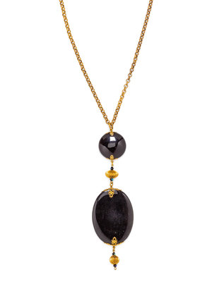 Goldtone textured chain with two black agate drops with lobster claw clasp.