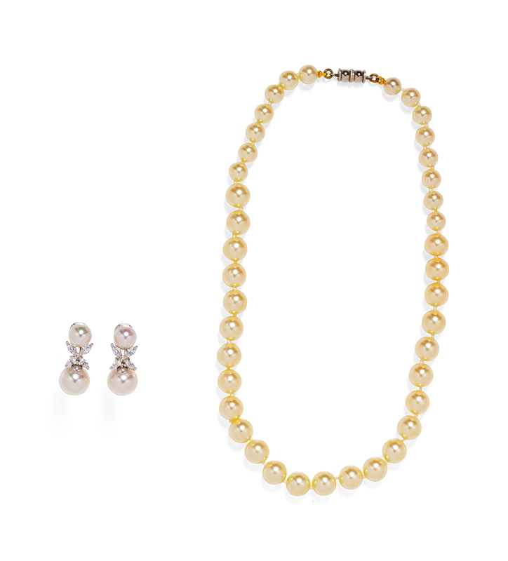 Faux Pearl Necklace and Earrings, 1980-2000s