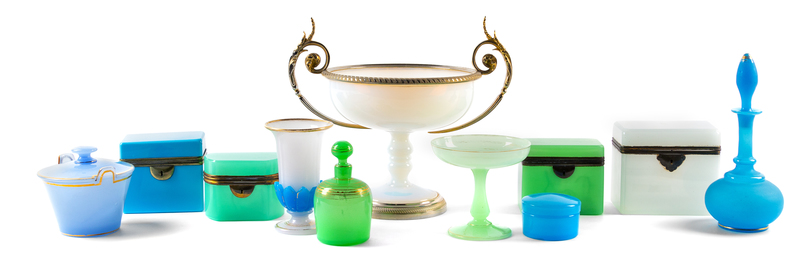 A Group of Eleven Opaline Glass Articles