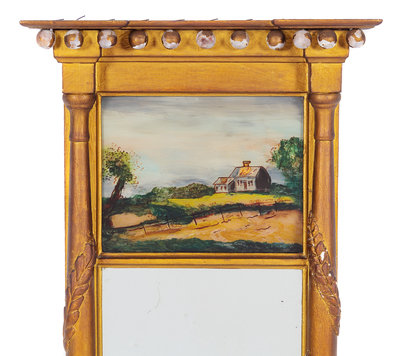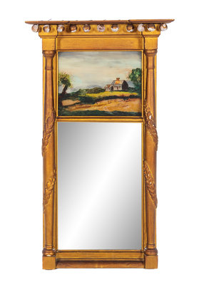 A Federal Style Giltwood Reverse Painted Trumeau Mirror
