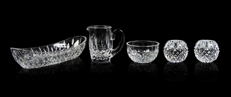 comprising an oval dish, a pair of candle holders, a small bowl and a creamer