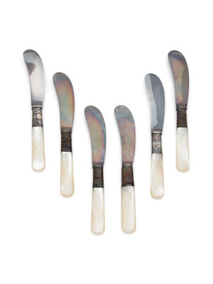 A Set of Six American Silver and Mother-of-Pearl Butter Spreaders