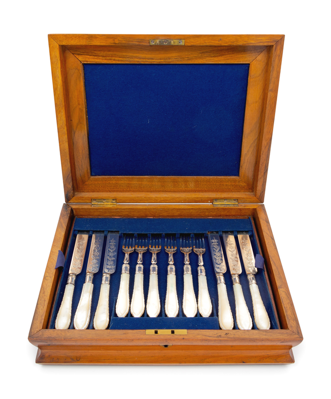 A Victorian Silver and Mother-of-Pearl Handled Dessert Service