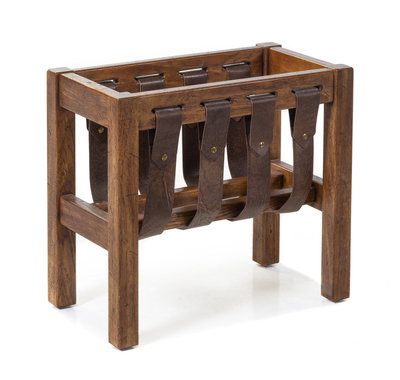 A Wood and Leather Magazine Rack