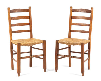 Pair of Ladder Back Chairs with Rush Seats