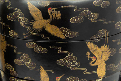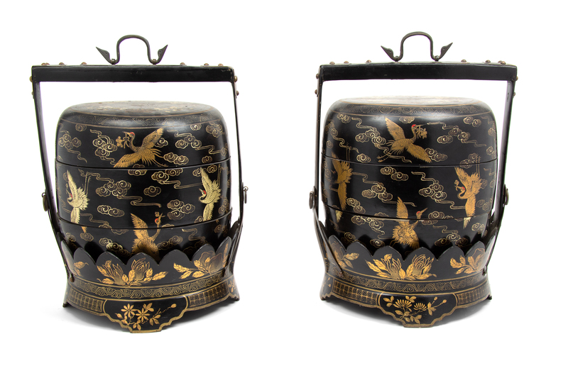 A Pair of Chinese Polychrome and Black Lacquer Baskets