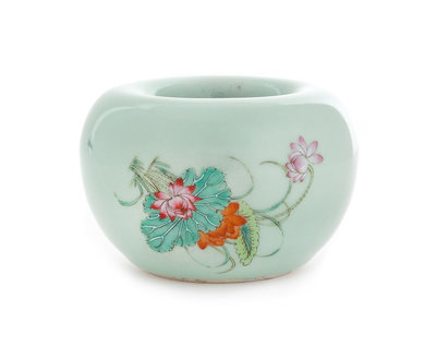 A Celadon Ground Famille Rose Porcelain Water Coupe