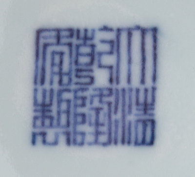 the globular body painted with floral sprigs, the underside bearing an apocryphal Qianlong six-character mark in underglaze blue.