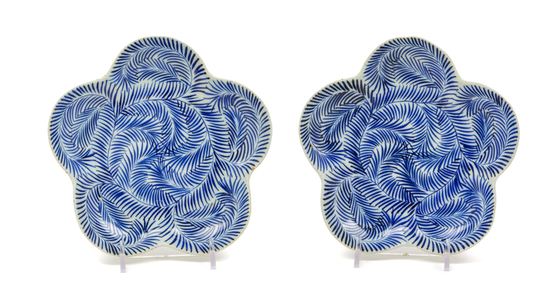 A Pair of Japanese Blue and White Porcelain Floriform Plates