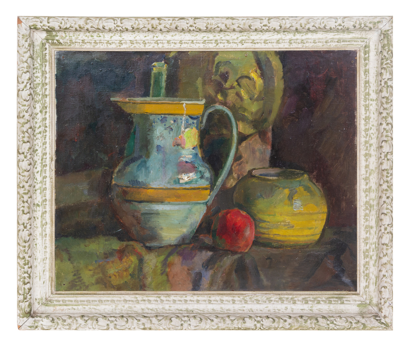 Still Life with Glazed Pottery and an Apple