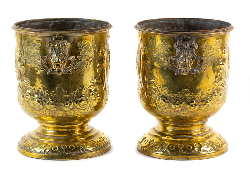 A Pair of Brass Cache Pots