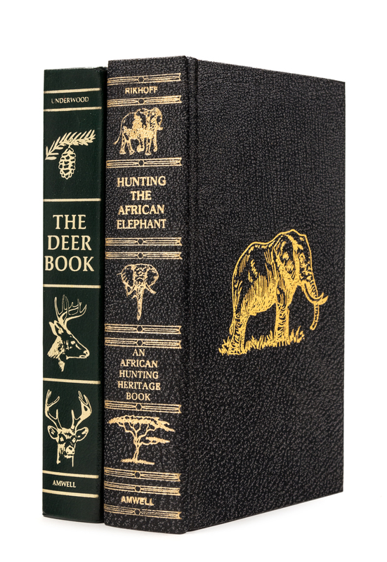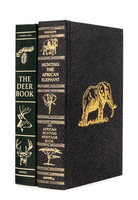 8vo. Frontispiece and illustrations by Al Barker. Original green publisher's binding gilt, all edges gilt, slipcase. LIMITED EDITION, number 644 of 1000 copies SIGNED BY UNDERWOOD, BARKER, and Jim Rikhoff president, N.S.F.L.[With:]RIKHOFF, Jim. Hunting the African Elephant. New Jersey: Amwell Press, 1985. 8vo. Illustrations by Guy Coheleach. Original blue publisher's binding gilt, all edges gilt, slipcase. LIMITED EDITION, number 767 of 1000 copies SIGNED BY RIKHOFF.