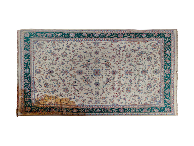 A White and Green Tabriz Rug