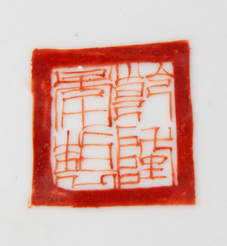 of baluster form, the front painted with various scholars with their attendants underneath pine trees in a mountain scene, the underside bearing an apocryphal Qianlong four-character iron red seal mark.
